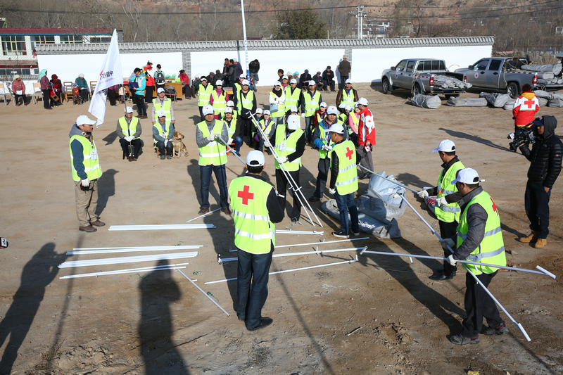 第一期培训班主要培训学习赈济救援队长职责、红十字及红新月会运动,红十字知识;中国及青海省红十字会灾害应变系统及工具等知识并安排了一天的实地赈济救援演练。 11月27日上午,赈济救援队在在总指挥的下达指令前往平安区三合镇新庄村进行了模拟情况下的野外赈济救援演练。演练围绕特定灾情(地震)发生后的救援队人员集结、任务分解、搭建指挥部、营区建设、走村入户收集整理受灾数据、完成灾情需求评估等具体目标,实施赈济救援工作,培训队员用演练方式检查培训效果, 查找紧急情况下赈济救援工作的薄弱环节, 真实感受灾区赈济救援工作中的各类场景。青海省红十字会副会长才让卓玛和救援队42名队员共同参加了演练。