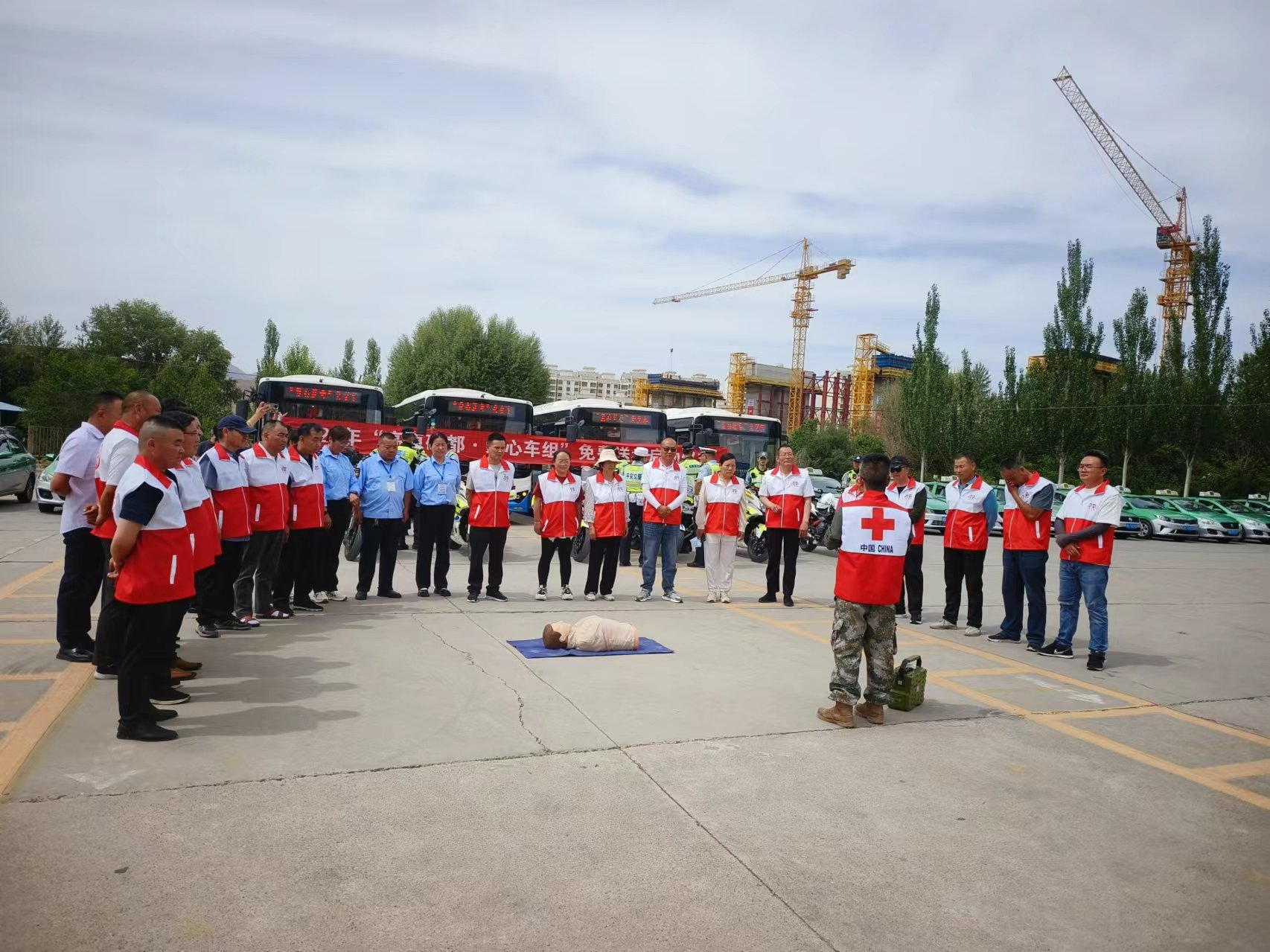 活动现场,区红十字会为爱心送考车队的驾驶员进行了应急救护培训并为他们送上了洗衣液等生活物资,希望他们在高考期间全心全意服务好每位考生,用快捷便利的交通,将考生安全准时送达考场,也给考场外焦急等待的家长们送去一份舒心。
