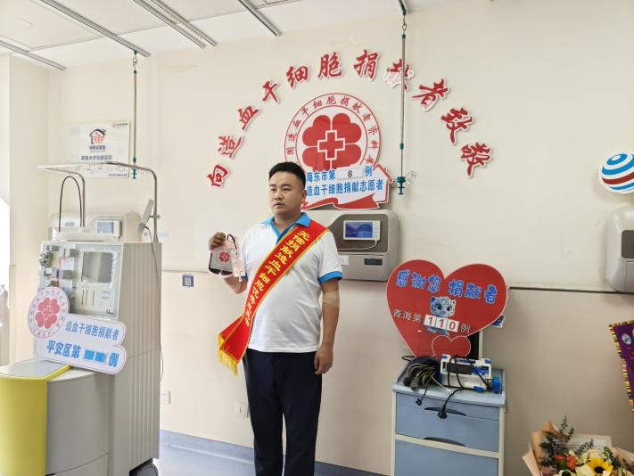 捐献者王先生系海东市直单位职工、一名光荣的退役军人,他以实际行动诠释了“人民至上、生命至上”的价值理念,展现了新时代青年与退役军人的崇高精神风貌和强烈社会责任感。当王先生得知与患者配型成功后,他毫不犹豫、挺身而出,克服困难完成捐献,其无私奉献的大爱善举,彰显了共产党员先锋模范作用、“退伍不褪色、退役不退志”的军人本色和“人道、博爱、奉献”的红十字精神。捐献过程中,王先生始终保持积极心态,配合医疗团队完成采集,最终于1月8日上午成功捐献造血干细胞悬液,为患者带来生命希望。这份珍贵的“生命种子”以最快的速度输入患者体内,完成了生命的“接力”。